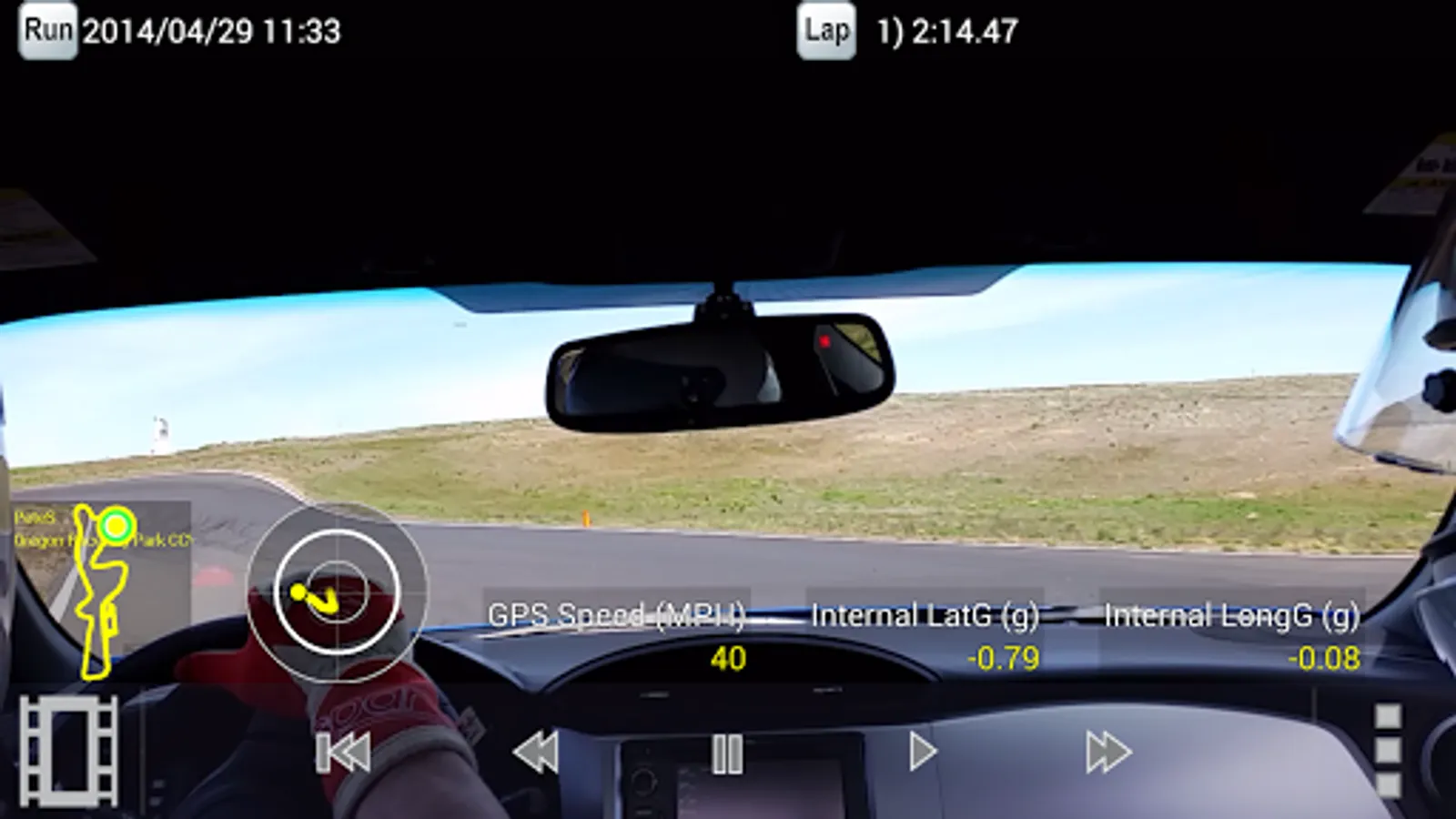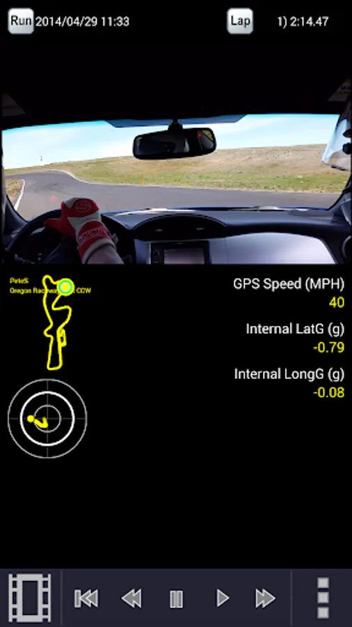 • Real-time display of speed, g forces, and lap times