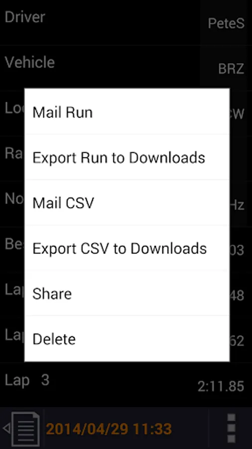 Recorded data is saved as Runs. Each Run starts when the vehicle exceeds 20MPH/33KPH and ends when the vehicle is moving slowly. The run includes several seconds of data before the recording trigger speed is reached. This way the start of an auto-cross run is included.