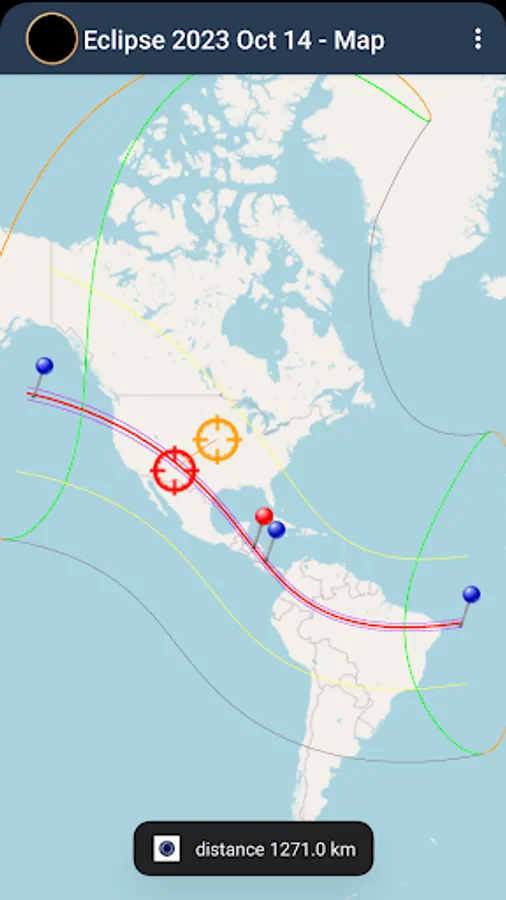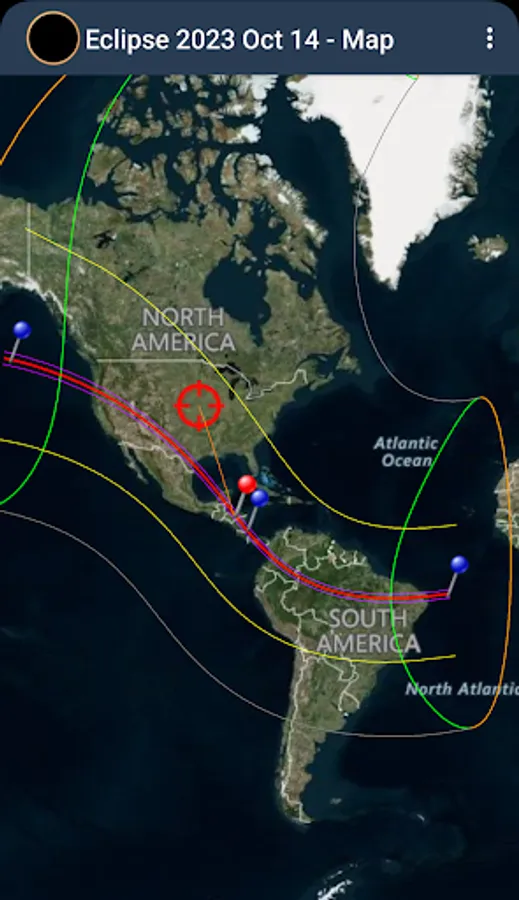 Your companion to the great annular all-American solar eclipse of 2023, October 14. Learn, how to observe this eclipse and where you will find the best observation places. Although a bit of the eclipse will be seen from large parts of North- South- and Middle America, you will get the best eclipse experience only in a narrow corridor. This app will guide you to the best places to enjoy this wonderful eclipse and tells you what you need to observe the eclipse!