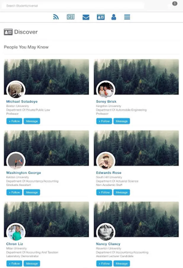 StudentUniversal enables users meet, connect and network with other students (high school, undergraduates and postgraduates), academicians (teachers or tutors and lecturers) across educational communities (Institutions and bodies)