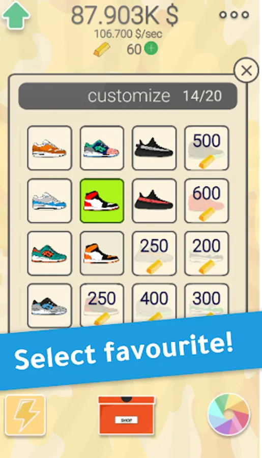Tapping on screen gives you money that you can spend on some new snkrs!