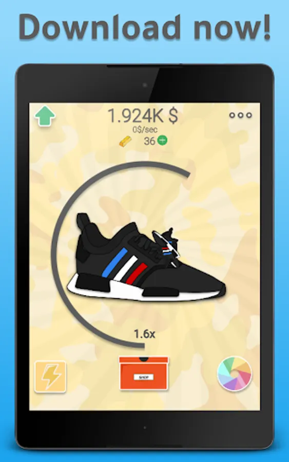Sneaker Tap is idle tycoon game about your favourite shoes. Upgrade your kicks, You can choose from over 40 different sneakers, YOU CHOOSE NEXT COLORWAY!