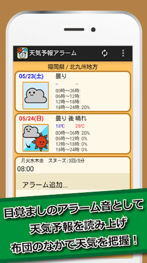 It is an application that reads out the weather forecast as an alarm sound of the alarm clock.