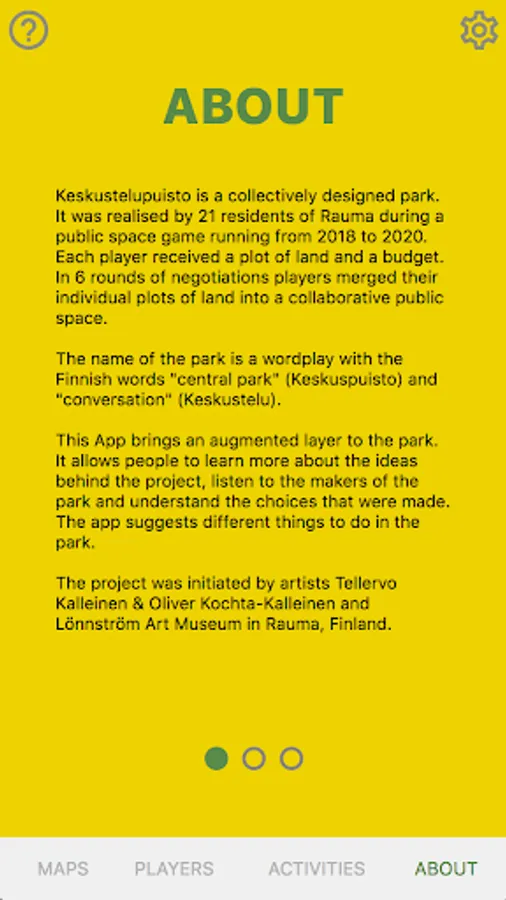 This App brings an augmented layer to the park. It allows people to learn more about the ideas behind the project, listen to the participants and understand better the choices that were made.