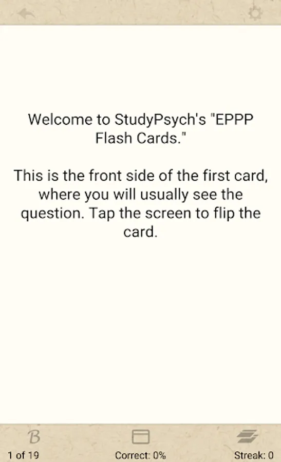 *This is a free "Lite" version of StudyPsych's EPPP Flash Card Set, developed to provide potential users of the full version an idea of the quality of these study materials. If after browsing this version you have questions or comments, please do not hesitate to contact us (studypsycheppp@gmail.com). Please do not leave negative comment merely because you were expecting all of our content in this free demo version of the app. We worked very hard to create an effective full set of EPPP flash cards, which are available in the Google Play store; the lite version is just to give potential users an idea of what to expect from the full version. Thanks!