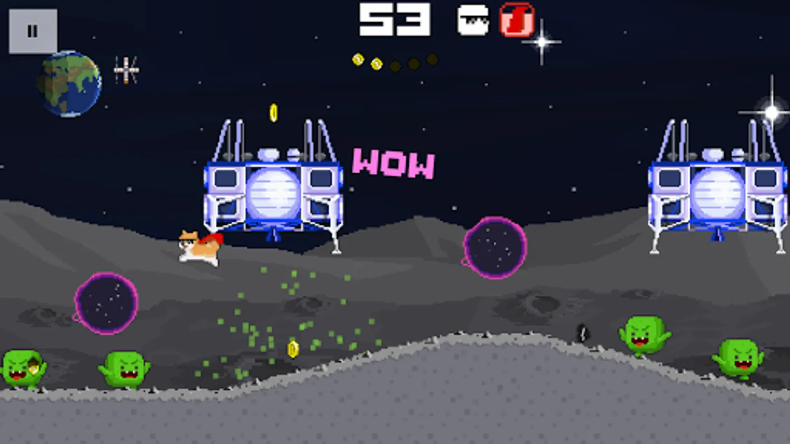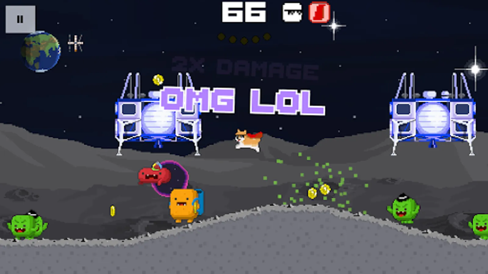 Battle wave after wave of fiendish foes in this hectic, non-stop, action-packed game! Creeps are causing trouble on the Moon. Doge must send them back to where they came from! Doge on Moon is a one-button game with retro roots, sure to be a fun and addictive challenge!