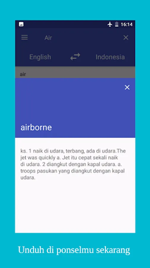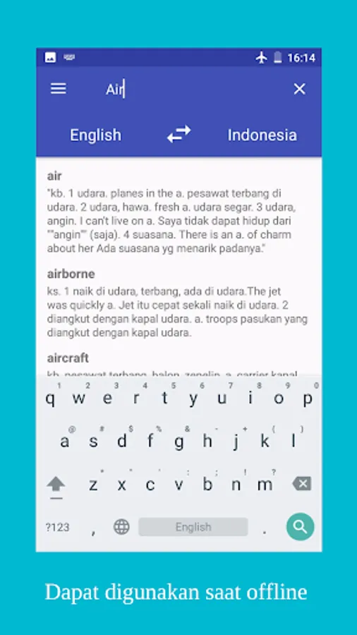 Indonesian - English and English - Indonesian Translation Dictionary that you can use for free. This dictionary can be used Offline or without an Internet connection. This application will make it easier for you to learn English both for students, and everyday use in general.