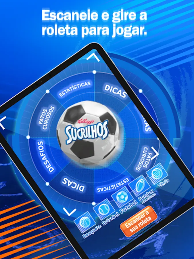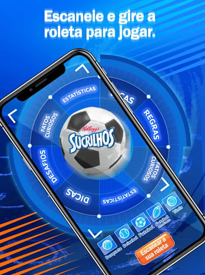 The Sucrilhos® application gives you access to a world of interesting trivia and challenges about your favorite sports. Just scan the marked area on the packaging to start the fun.