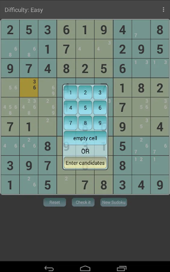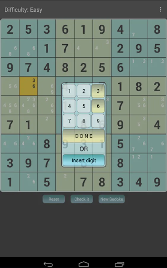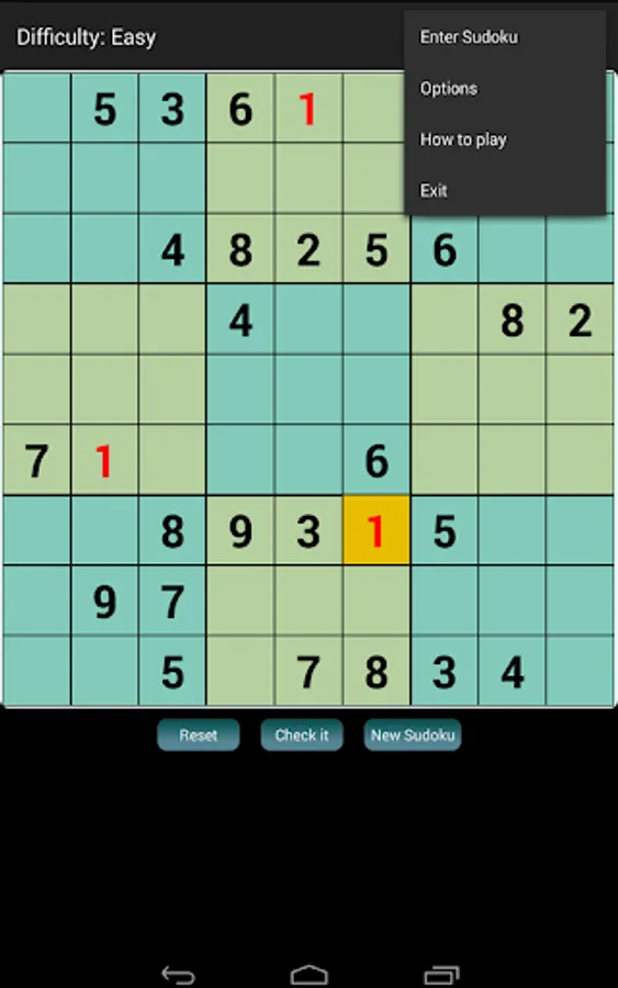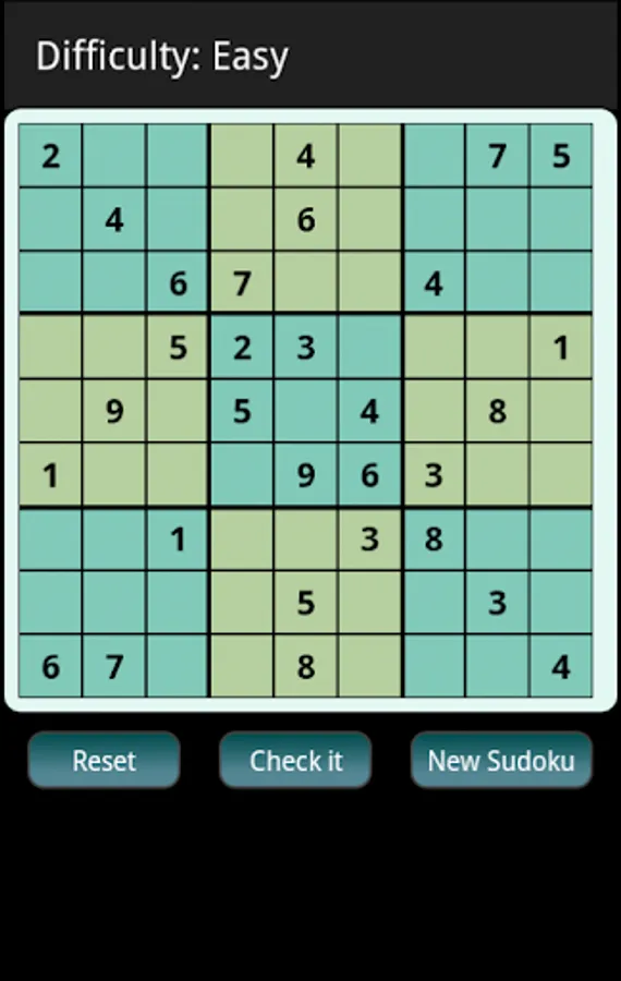Sudoku Free generates puzzles with 3 difficulty levels (Easy, Medium and Hard) depending on Sudoku strategies needed to solve it.