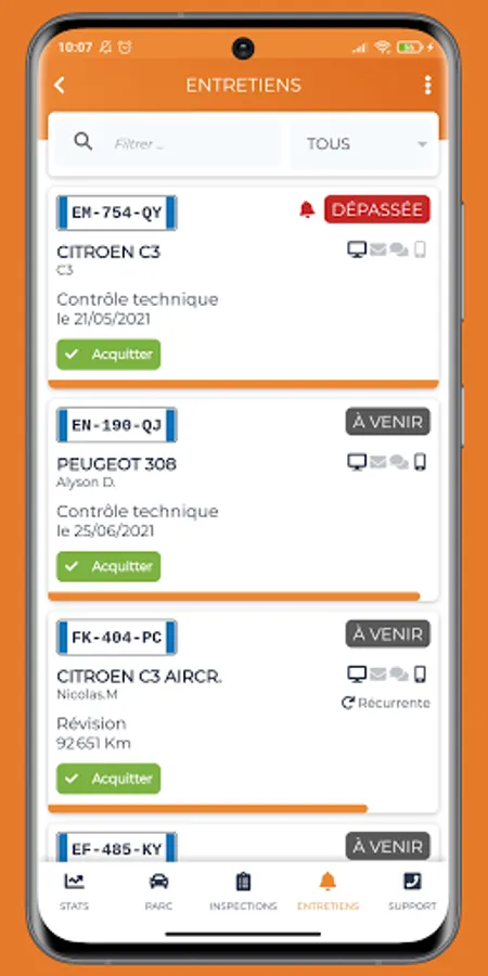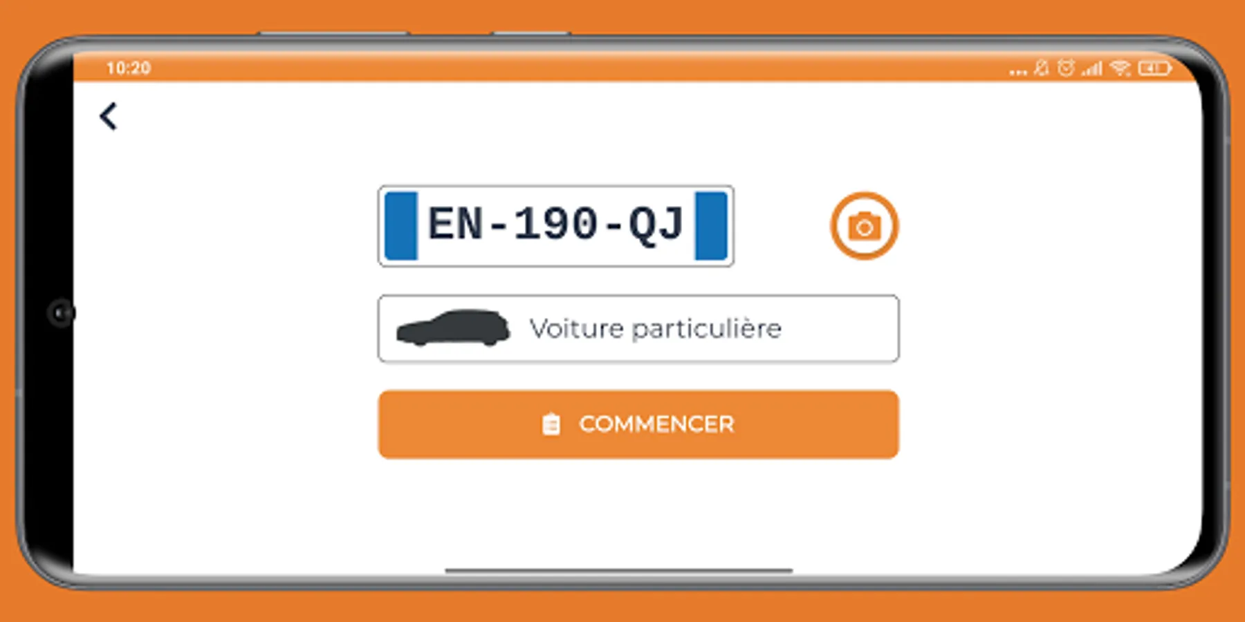 ✔1st stage : Photograph the licence plate which is going to enable you to automatically identify the vehicle (if the vehicle is record in the SuiviDeFlotte.net portal)