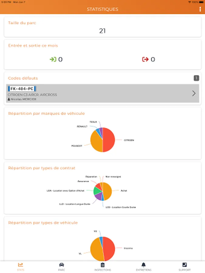 SuiviParc allows a fast access to the different indicators of the fleet management but also to realize the current state of a vehicle in less than 2 minutes.