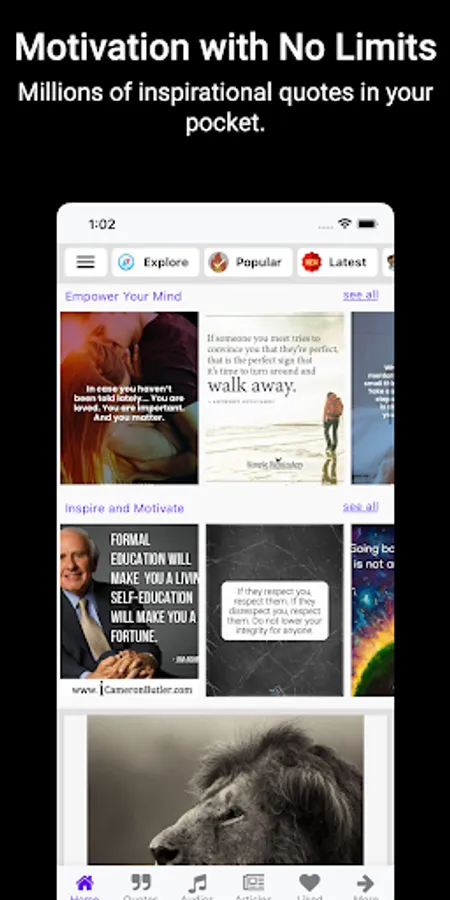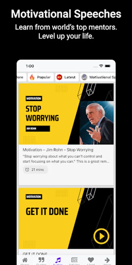 Through our collection of motivational quotes, guided meditations, articles and affirmations, we will help you get a healthier and happier version of yourself. Whether your goal is to improve your mental health or find motivation to make changes in life, downloading this free app will take you one step closer to achieving your target. There are no excuses - get the best version of yourself by starting today!