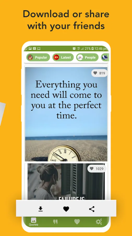 Quote reminder (Daily quote notifications) is the simplest and most powerful tools for mental growth. It’s all about keeping the right thoughts top of mind from the get-go every day, so they’re readily available on those hard days when you need them most. Daily motivational status. Pictures and text quotes on nature backgrounds. Motivational quotes status.
