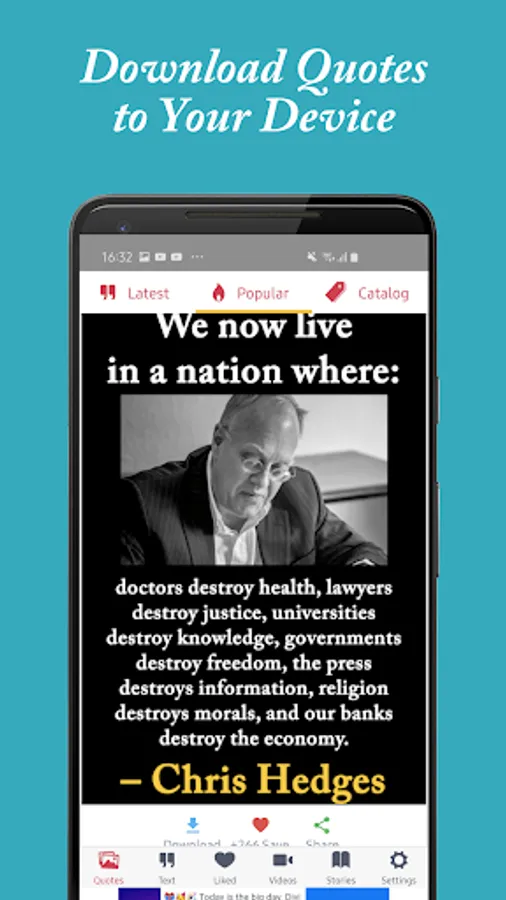 The app includes a wide range of topics such as self-esteem, relationships and dealing with stress, as well as a selection of carefully designed themes to choose from. New quotes added every day.