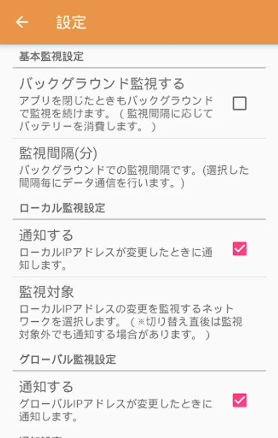 · You can specify to monitor Wi-Fi connection / mobile network connection.