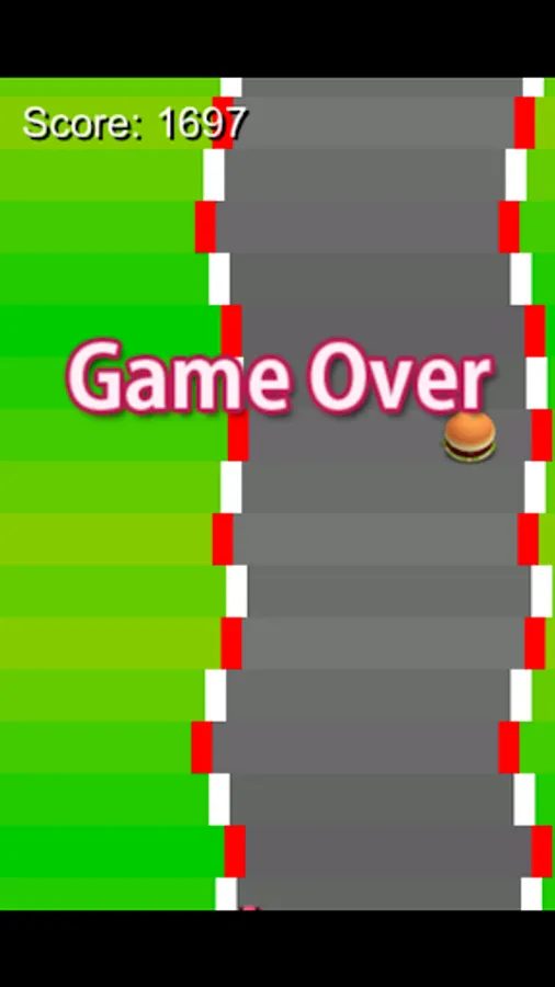 If the car hits the side of the road, the car is pushed back. The game ends if the car goes out of the bottom.