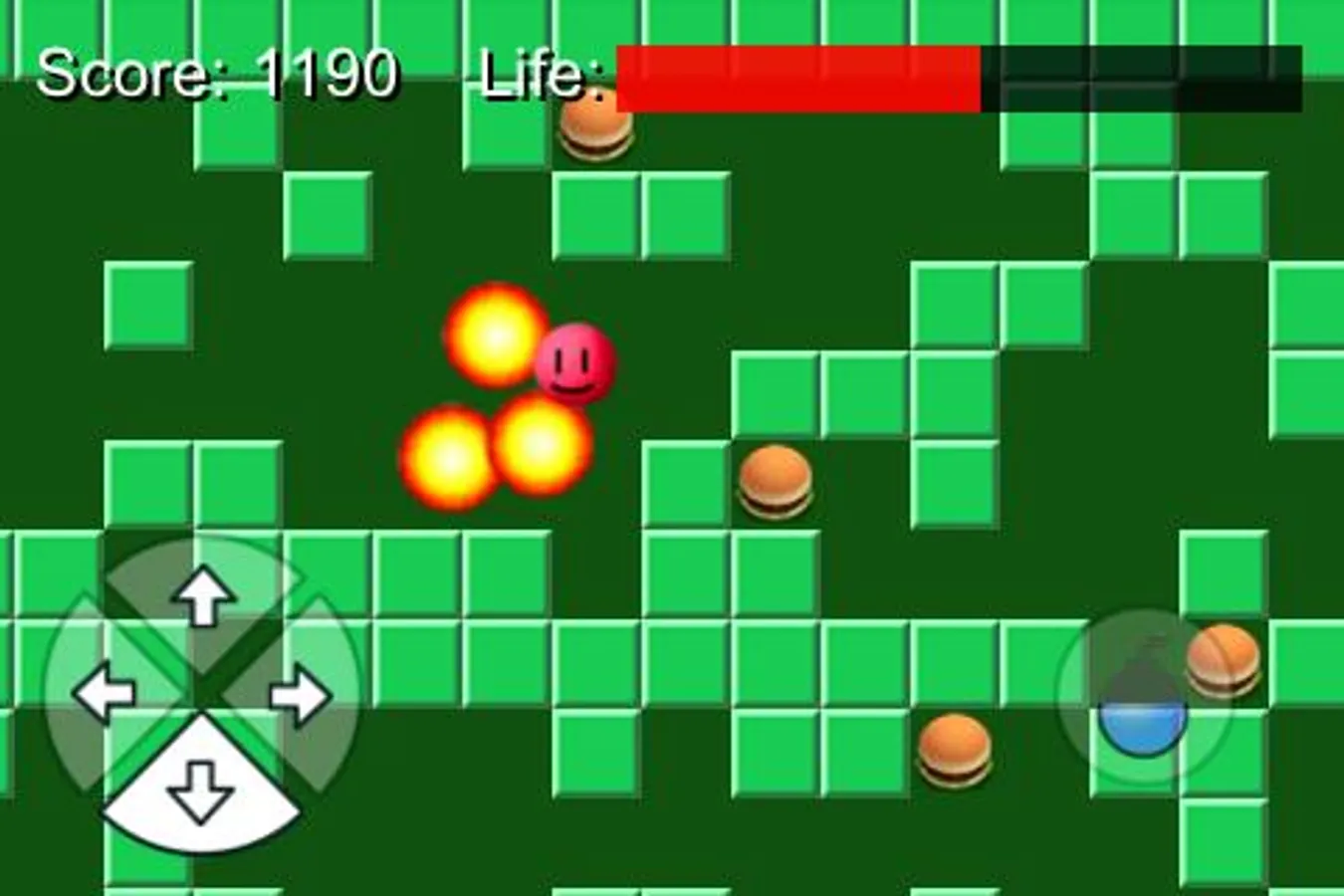 Touch the arrow buttons at the screen bottom to move and eat delicious hamburgers!