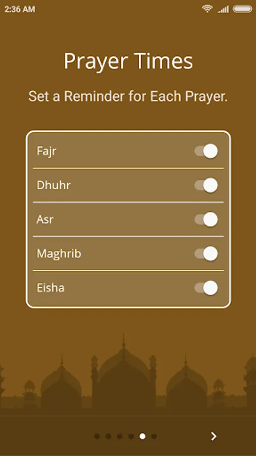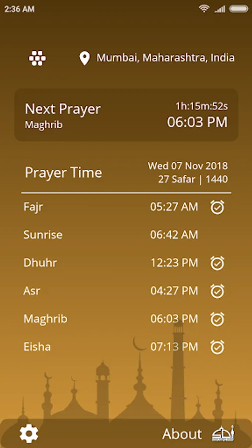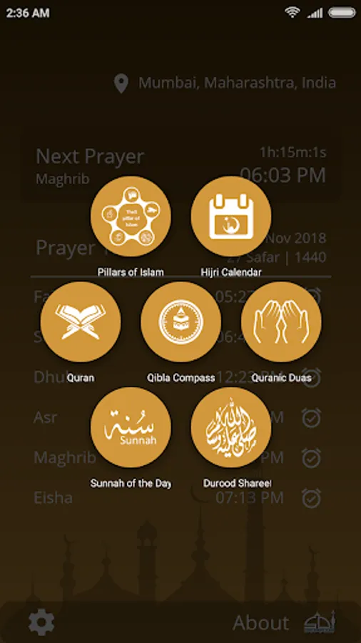 1. Salaah alerts: The Application notifies the commencement and end of a Salaah time with a call to pray.