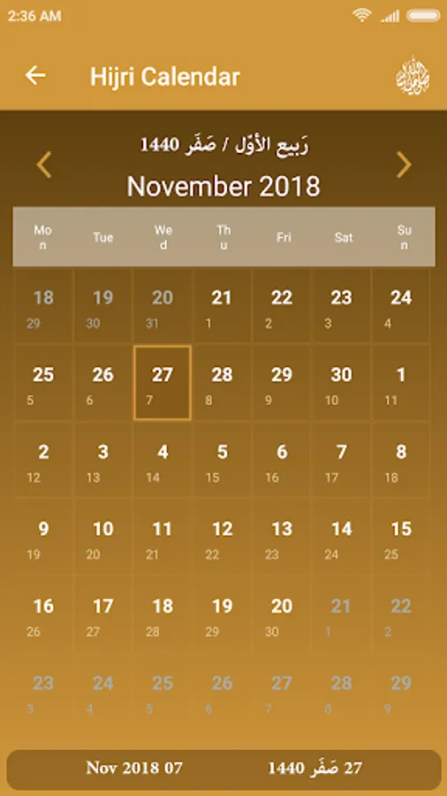 5. Hijri Calendar: The App provides the user both the Hijri and English calendars of the years, by setting the dates as per visibility of the moon.