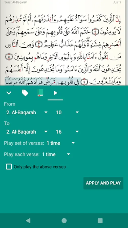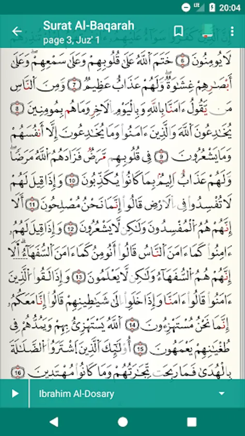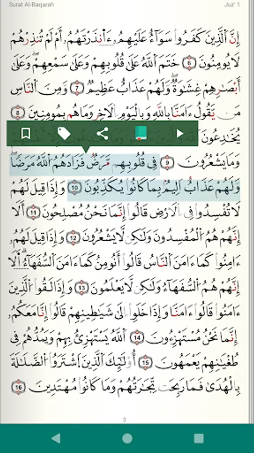 Surat, Jouz 'Hizb, Bookmark, Favorite to resume recitation