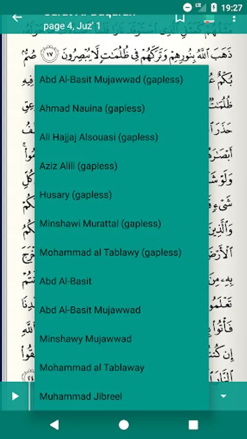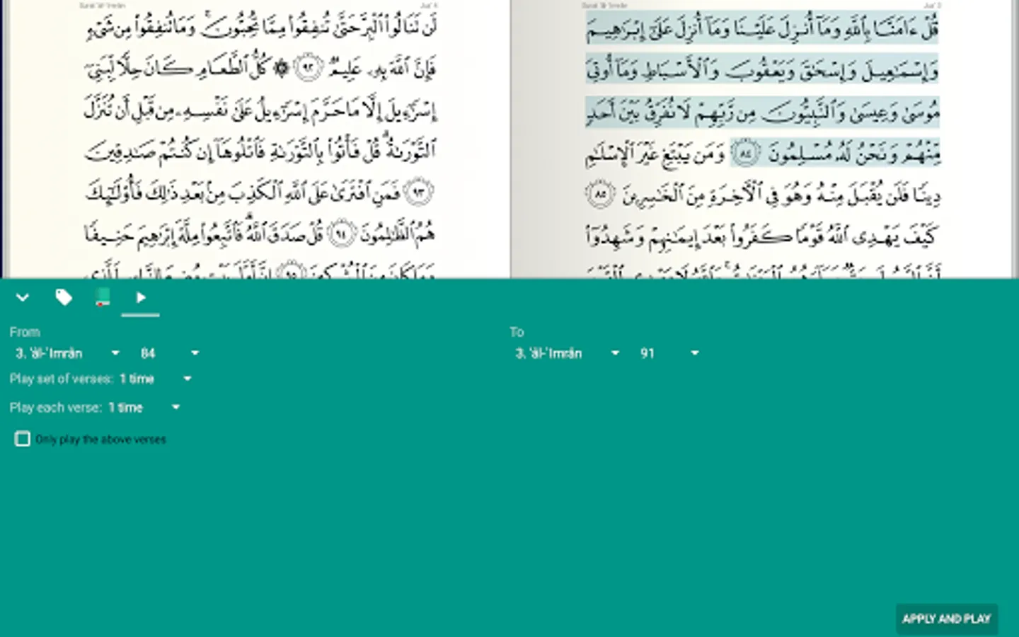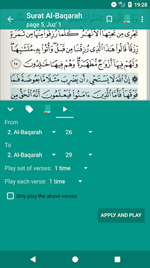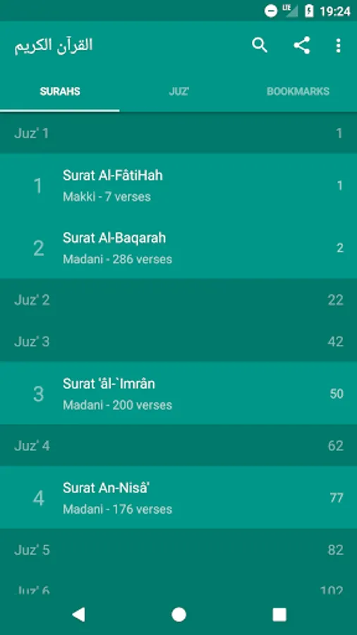 Surat, Jouz 'Hizb, Bookmark, Favorite to resume recitation