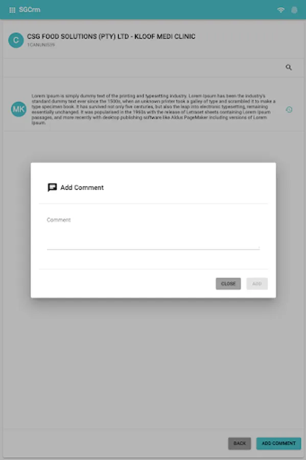 Our CRM tool records comments to make Reps and back office staff communication more efficiently