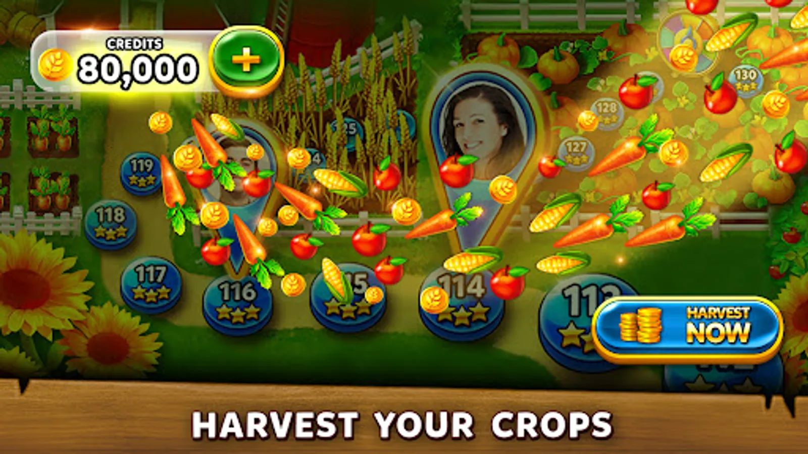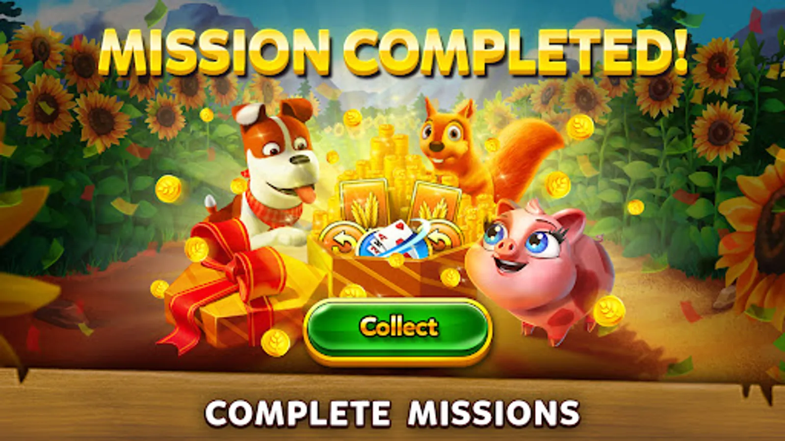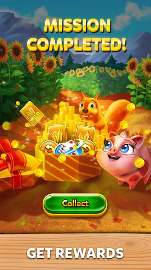 Build your farm and enjoy bonuses along the way to make your Solitaire Grand Harvest experience even more fun. Share your fun farming adventure with others by connecting through Facebook and earn even more bonus credits.