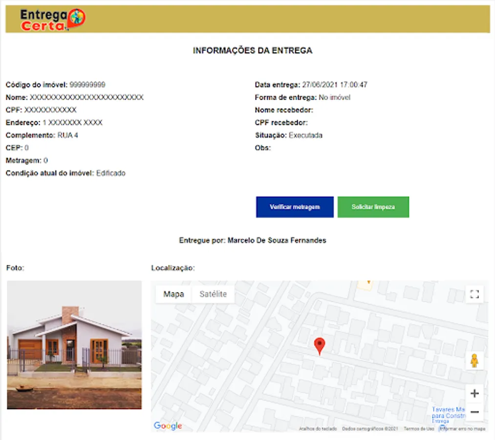 Application to control deliveries with photographic record, georeferencing, date, time, delivery and receiver information.