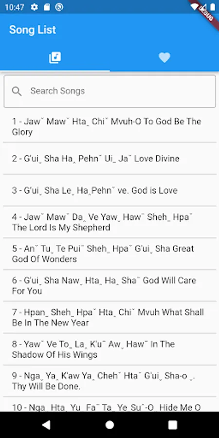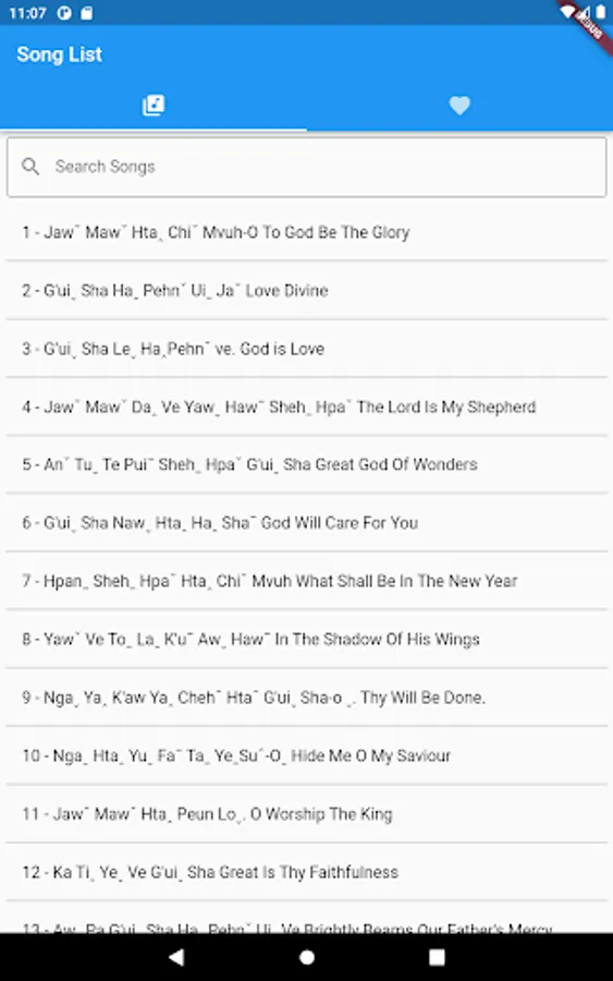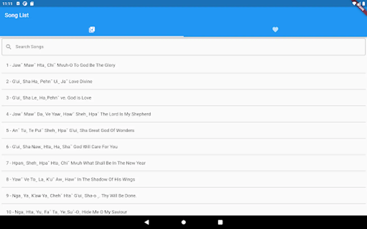 This is a songbook for the Lahu language. It has worship songs and the ability to play them as well as adding them to a favorite list. The goal of this app is to help people to learn the worship songs, have the lyrics available, as well as enjoyment of the songs through the recordings.