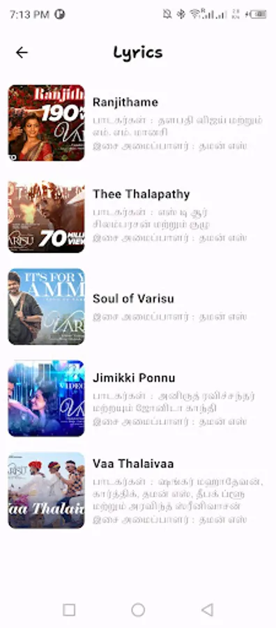 You can find Tamil actor Thalapathy Vijay wallpapers & Ringtones. We added all the songs lyrics from the movie to enjoy while listening to those songs. The app contains all the details about the Varisu movie including cast, crew, release date and story.