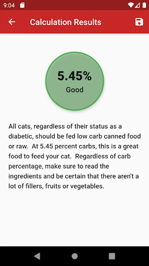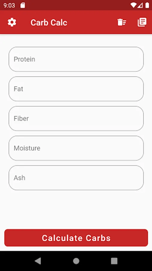 One of the cornerstones of the Tight Regulation Protocol is that cats should be fed only high quality, low carbohydrate, canned foods. This app provides an easy method for calculating the carbohydrate content of cat food. Enter the Protein, Fat, Fiber, Moisture, and Ash values from the back of any can of cat food, and Carbohydrate value will be displayed. The goal of CarbCalc is to make the selection of cat food a simple and straightforward process.