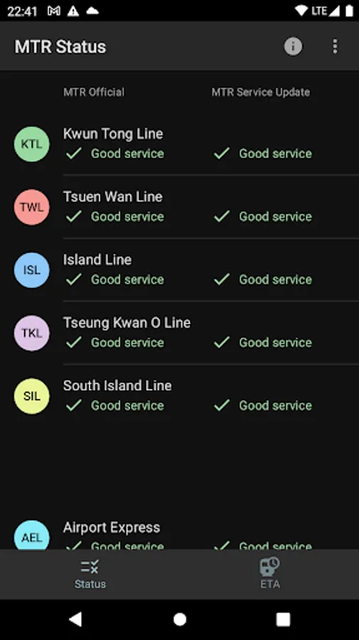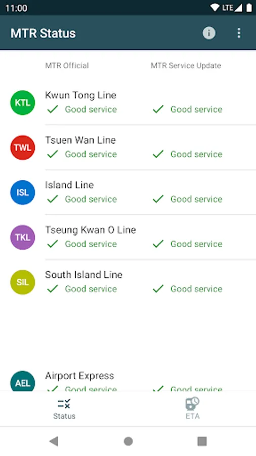 Provide service updates of MTR lines and train ETA in Hong Kong.