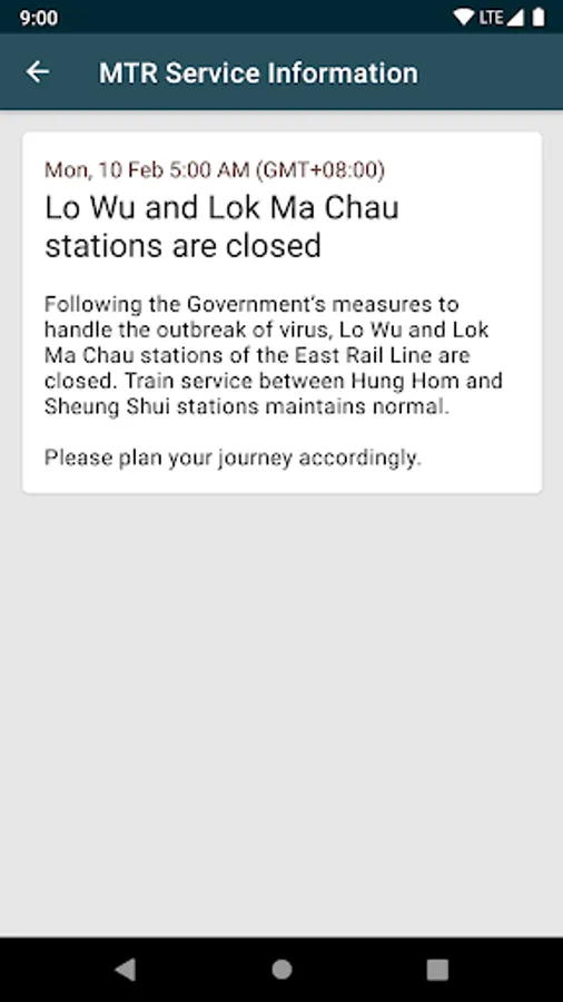 Data is provided by MTR and MTR Service Update.