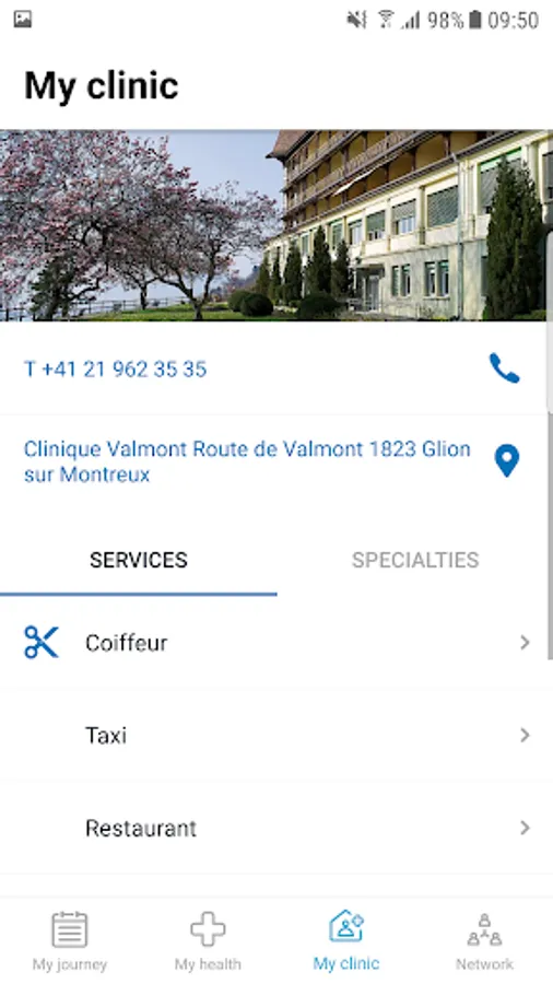 Follow your health journey at Clinique Valmont: appointments, exercises prescribed by your therapist and monitoring of your physical activity. Also access all the information on the doctors and services of the Swiss Medical Network health network.