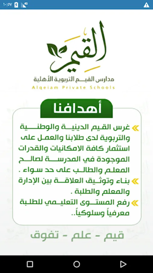 For this we have designed the application of educational values schools to be the link between the school and the home through the quality of services provided by the application in following up our students and contributing to raising their educational and scientific level.