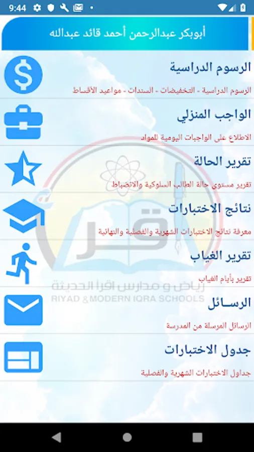 This application helps parents obtain academic and financial information and status reports on their children at Iqra schools. It is the link between school and home in order to enhance school performance and cooperation between the home and school in raising students' level.