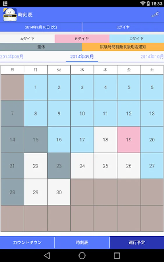また、日付をタップすると、その日付の時刻表とダイヤが表示されます。
