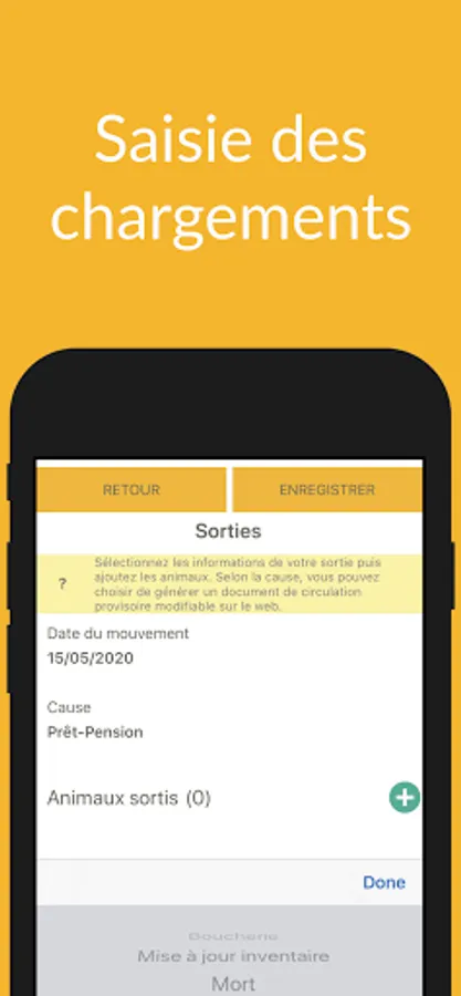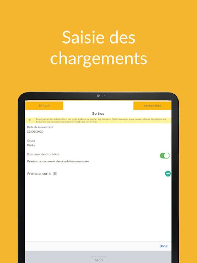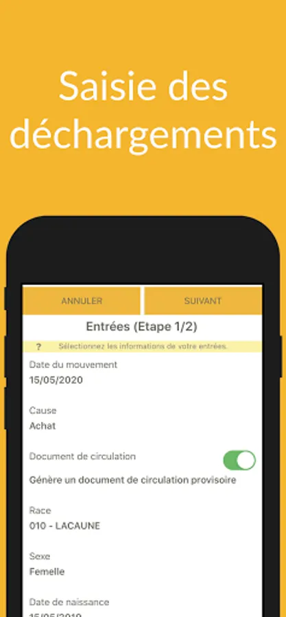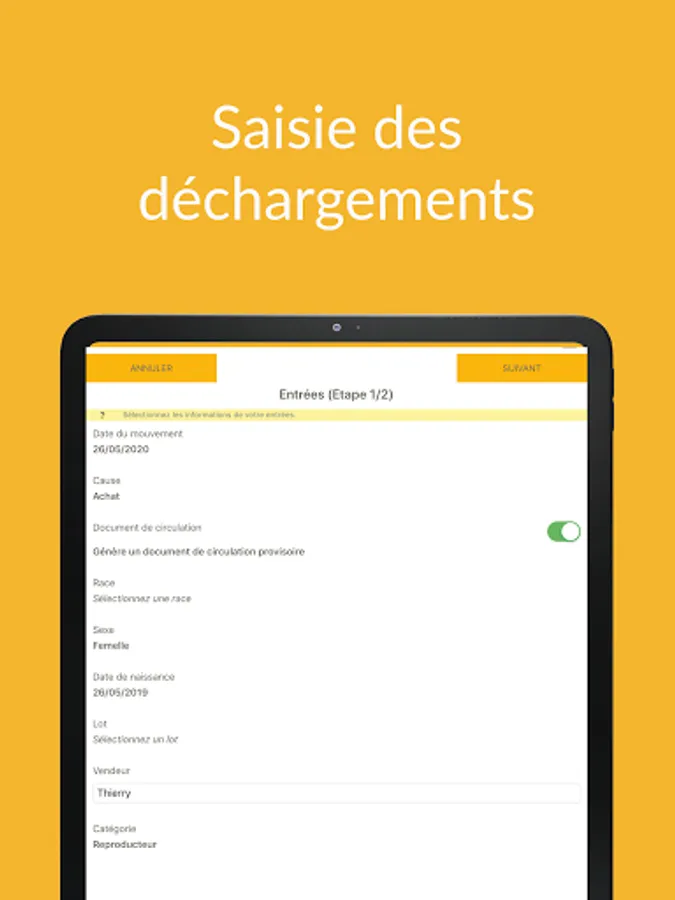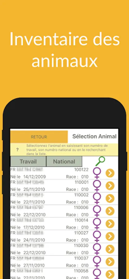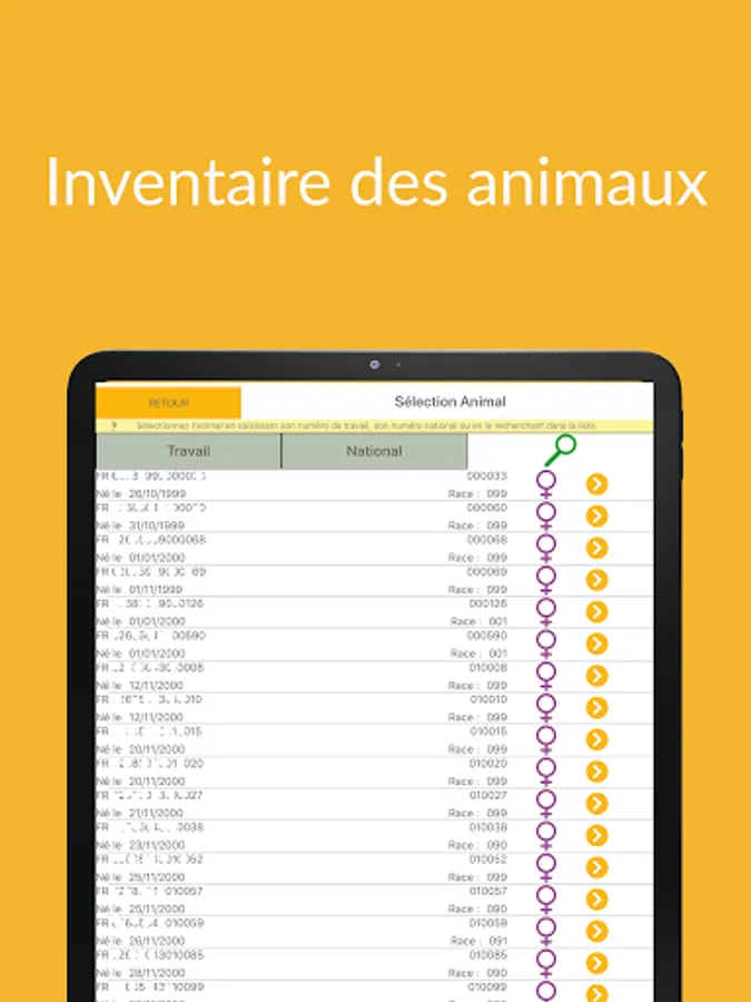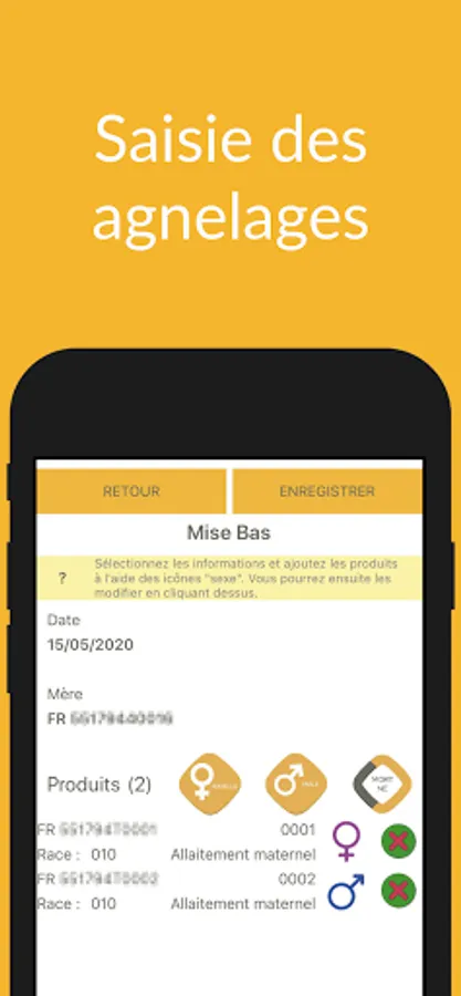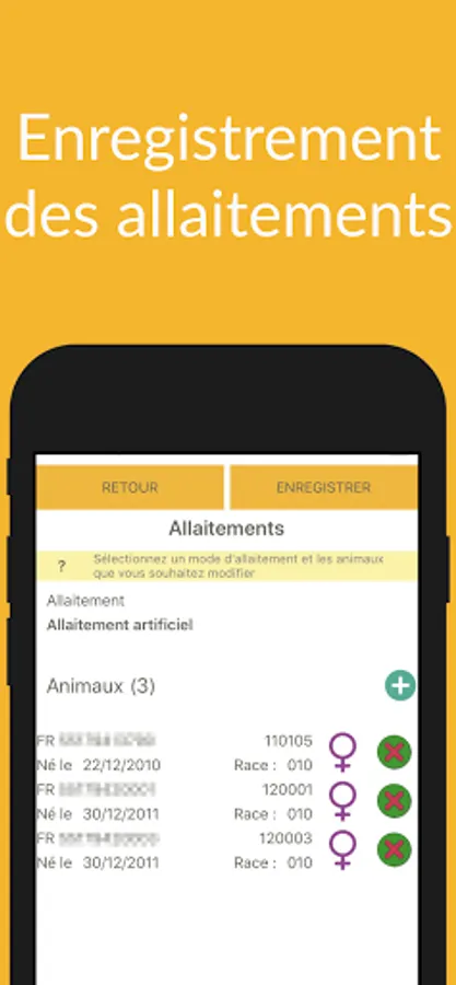 - Register and send directly from your mobile device all notifications (births, breastfeeding, exits, red looping, ...)