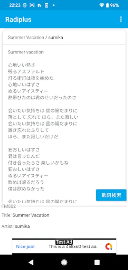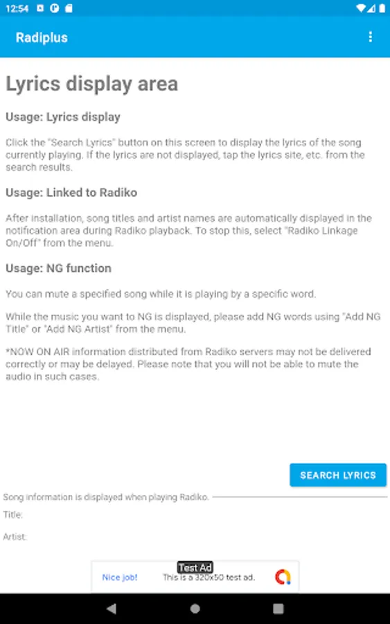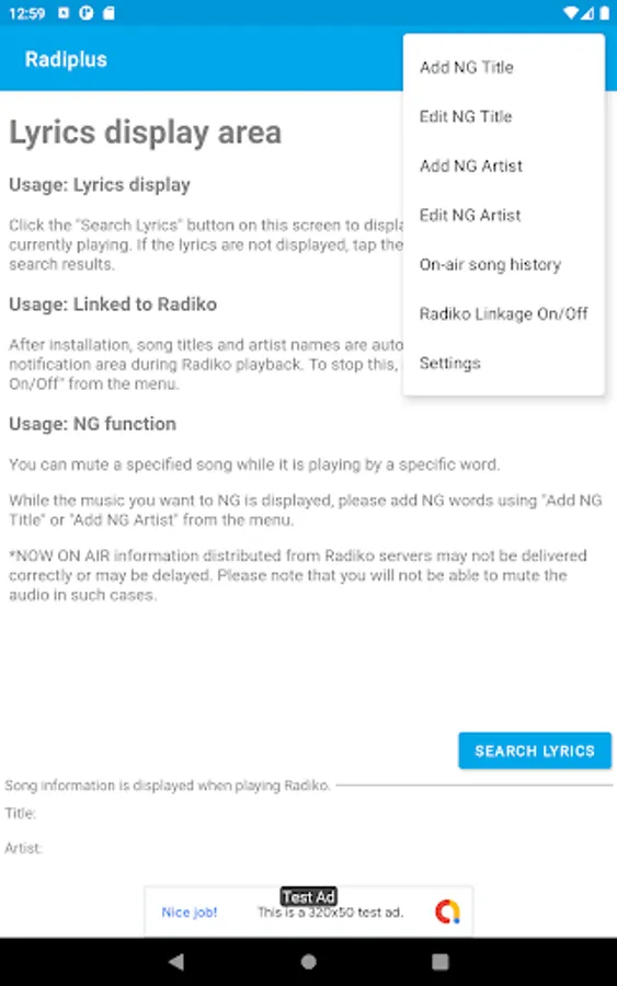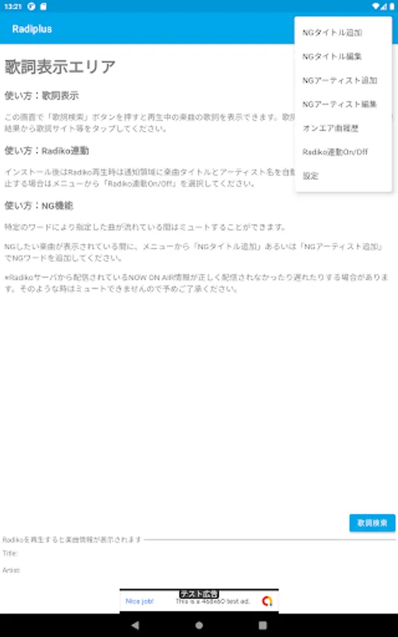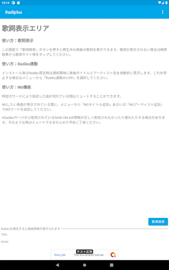 With the Radiplus app, you can search and display the lyrics of the currently displayed song with a single tap.