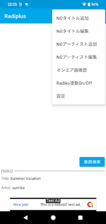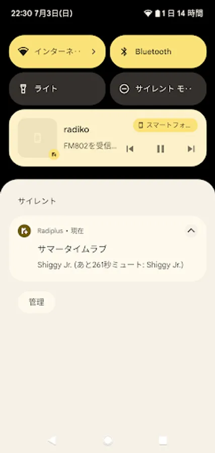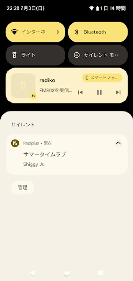 When you start playing with Radiko, the "song title" and "artist name" will be displayed automatically in the notification area.