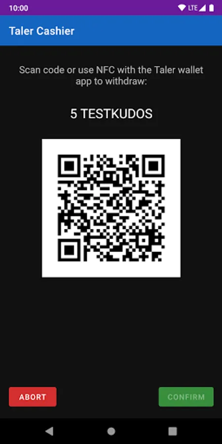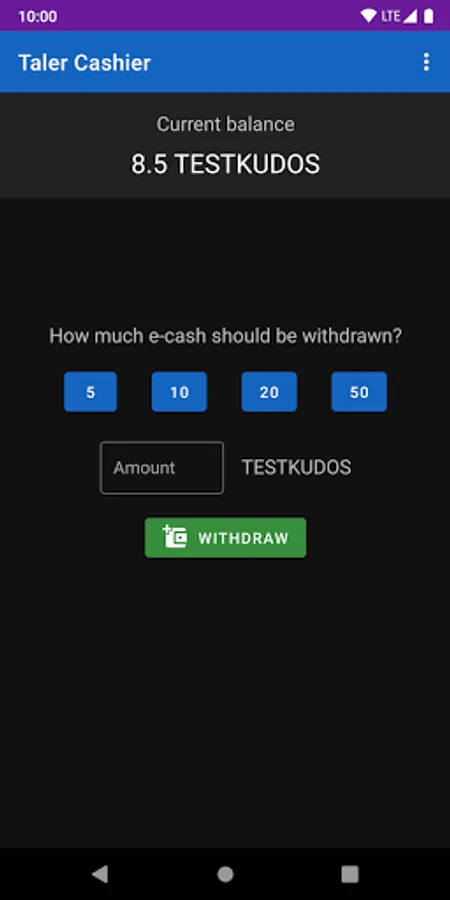 The GNU Taler Cashier app allows you to take in physical cash and hand electronic Taler cash in exchange. This is useful for regional or organizational currencies.