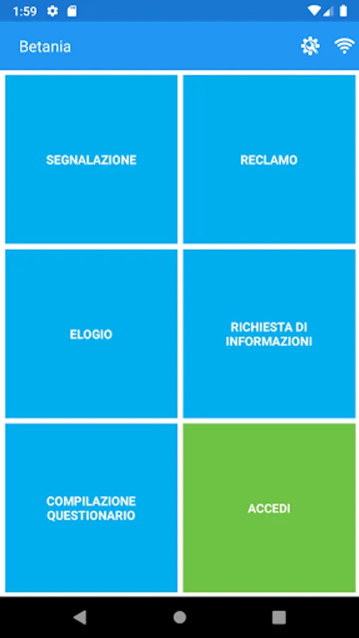 The BetaniaCare app allows users to contact the Evangelical Bethany Foundation, submit reports, complaints, praise, or to request information. Through a specific function it is also possible to fill in satisfaction questionnaires.