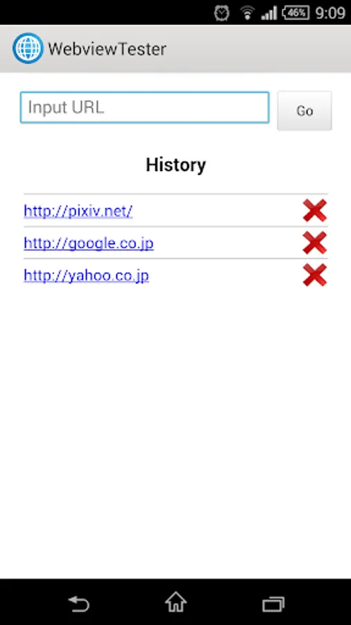 This app just shows the page which was indicated by input URL in Android standard component "WebView".
