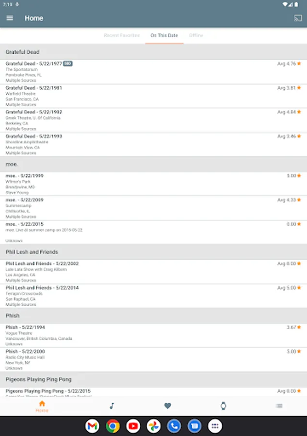 Taper's Section gives you access to the Live Music Archive from archive.org as well as Phish.in in the palm of your hand.
