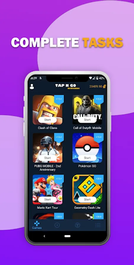 - Play your favorite games to earn tokens on Tap N Go Rewards