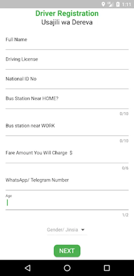 To register a driver must have a driver's license number as well as a national identification number (NIDA).