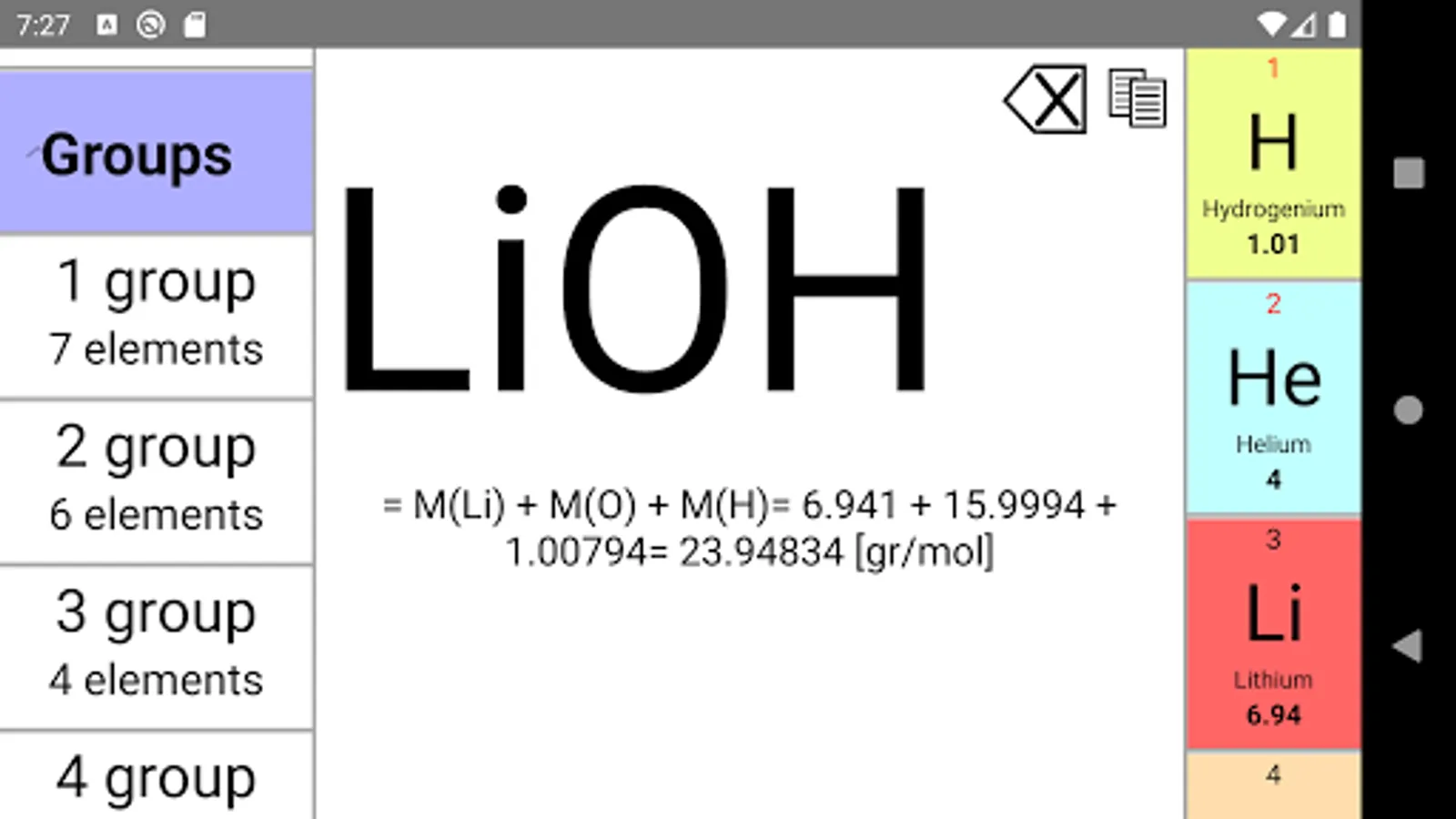 Filter the elementen with starting letter in the left list. Choose element, click and hold long, drag and drop where intended. If needed drag and drop in the trash can or use the backspace.