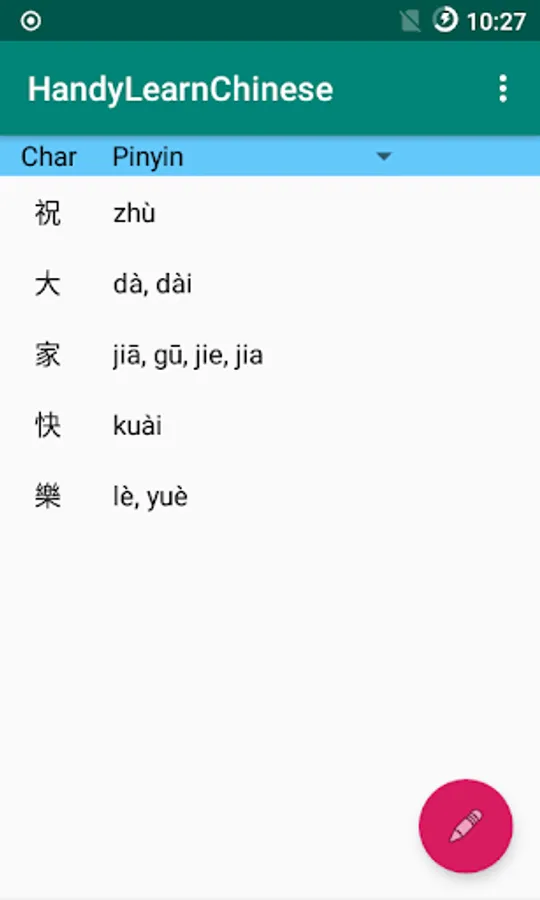 HandyLearnChinese shows Input Method Sequence of a Chinese character. (e.g. Pinyin, Wubi, Cangjie, and Quick).
