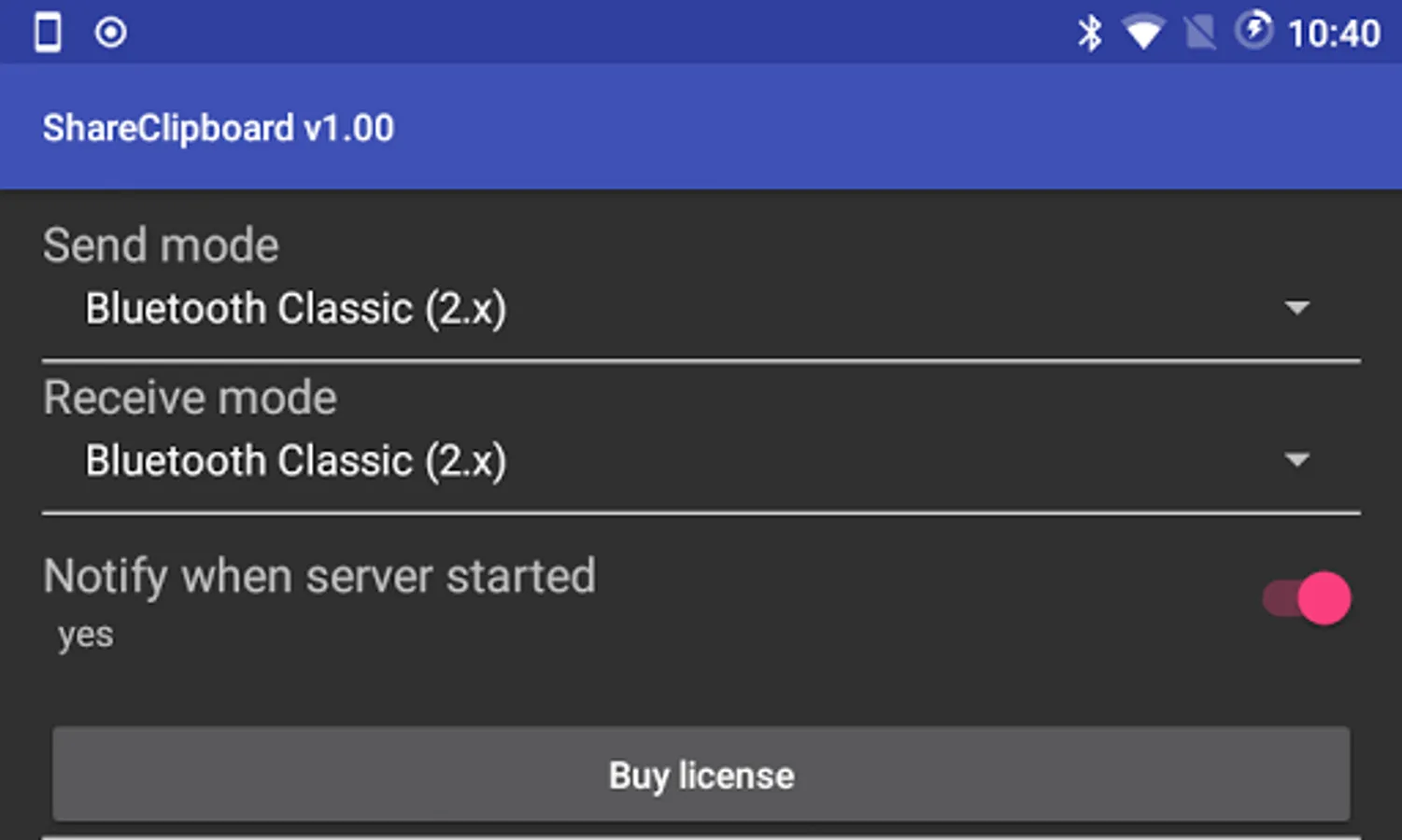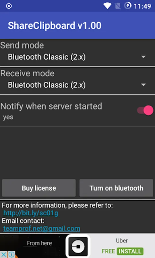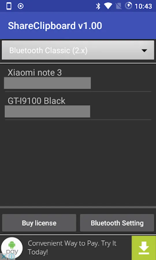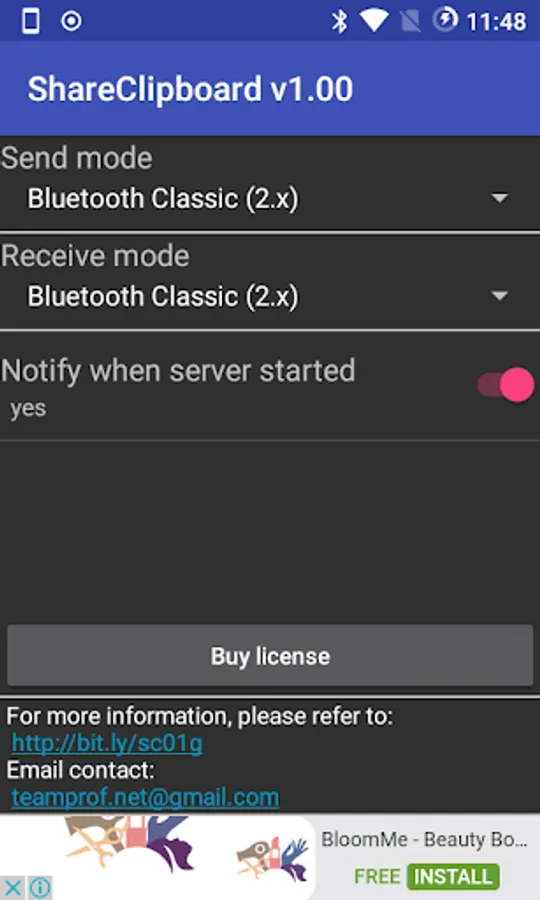 This APP lets you copy text from source device to destination's clipboard through Bluetooth Classic (Bluetooth 2.x)