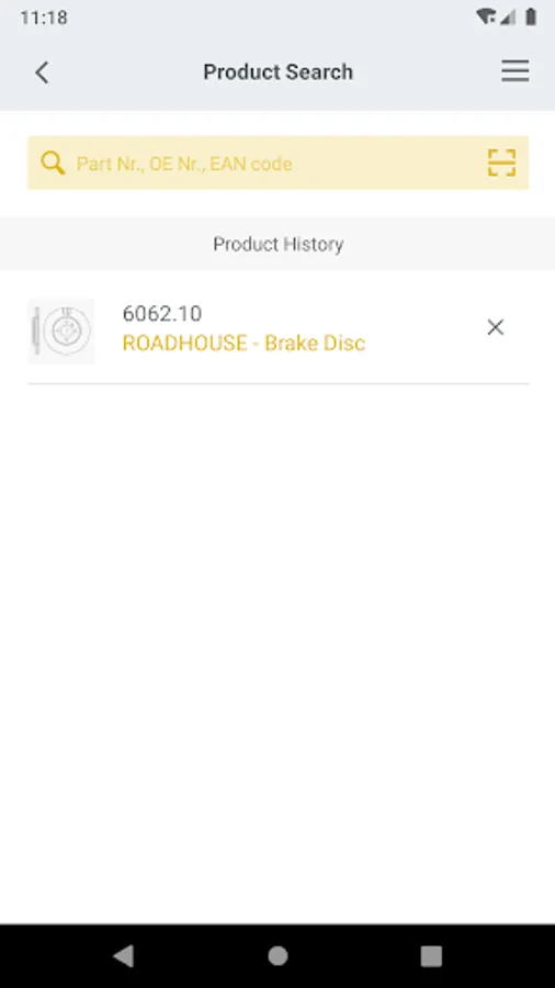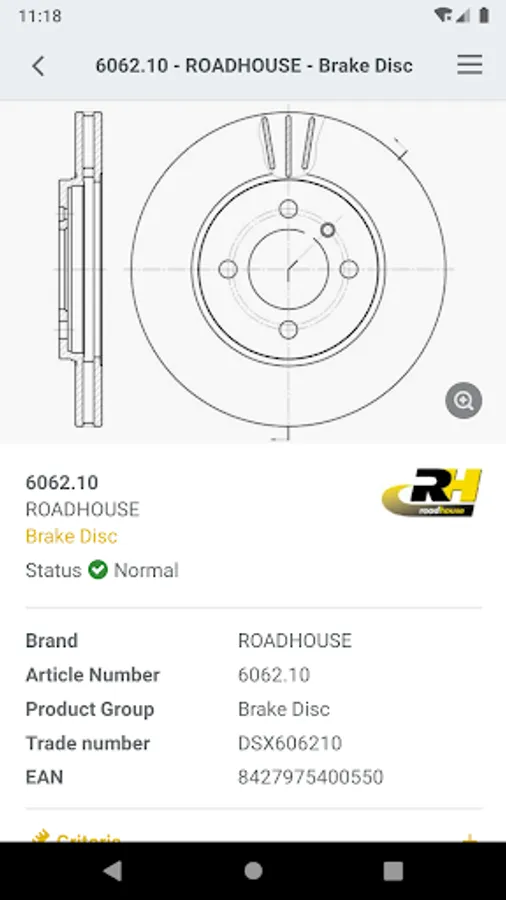 - Product Search: Find the part number by directly entering any Road House reference, origin reference, competitors reference, international number (WVA), FMSI…In this option you can also scan the Road House product barcode with your device.